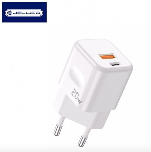 Adaptateur secteur double ports USB et USB-C/Type C (20W) avec cable Type C vers Type C JELLICO C87 AR0019181