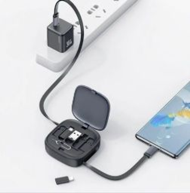 Kit d'Accessoires Usams US-SJ650 U87 6 en 1 (avec Câble Rétractable Type-C 60W + 3 Adaptateurs) Noir
