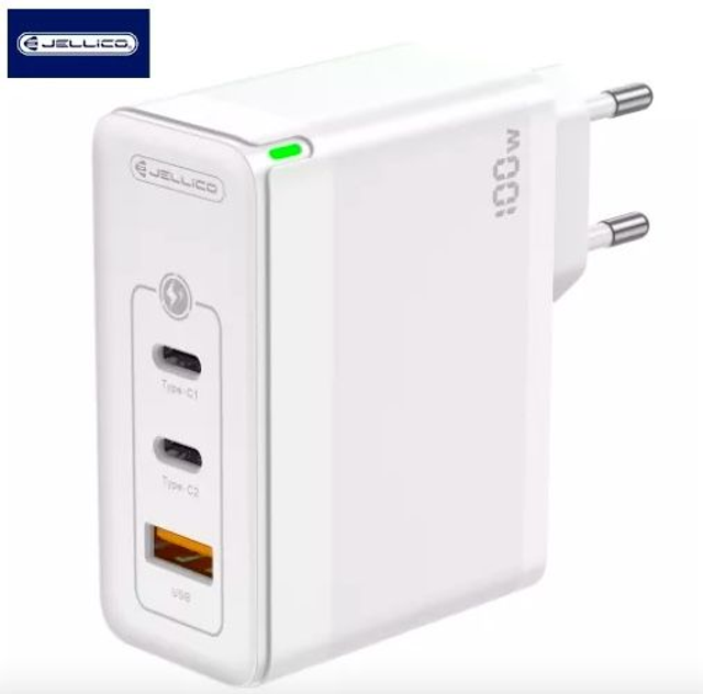 Adaptateur secteur Triple port 2X USB-C + 1X USB-A (100W) avec cable USB-C/Type C vers Type C JELLICO C118 AR0023235